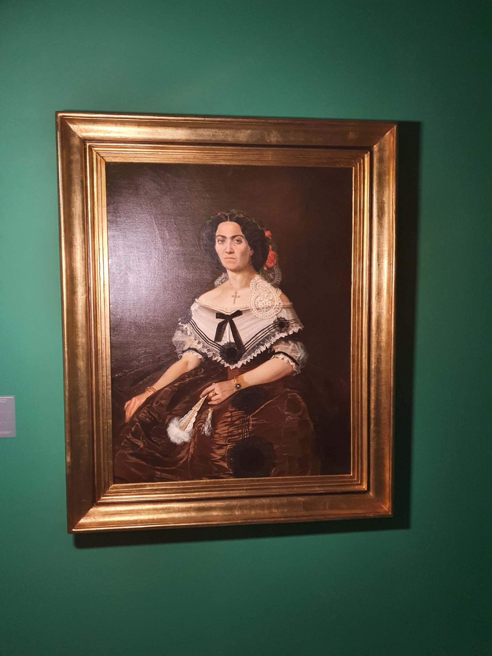 Cel de-al doilea pavilion este dedicat portretelor pictate la comandă de Theodor Aman, portrete ale unor personalități importante din înalta societate bucureșteană de la acea vreme. Pe lângă portretele de aparat pentru aristocrația românească și cele pentru instituțiile noi apărute, artistul a realizat inclusiv tablouri având ca model fie pe mama sa, Pepica sau pe Ana, soția, dar și principala sa muză. Prin prisma imaginii lor, Theodor Aman redă detalii privitoare la stilul de viață feminin din a doua jumătate a secolului al XIX-lea.