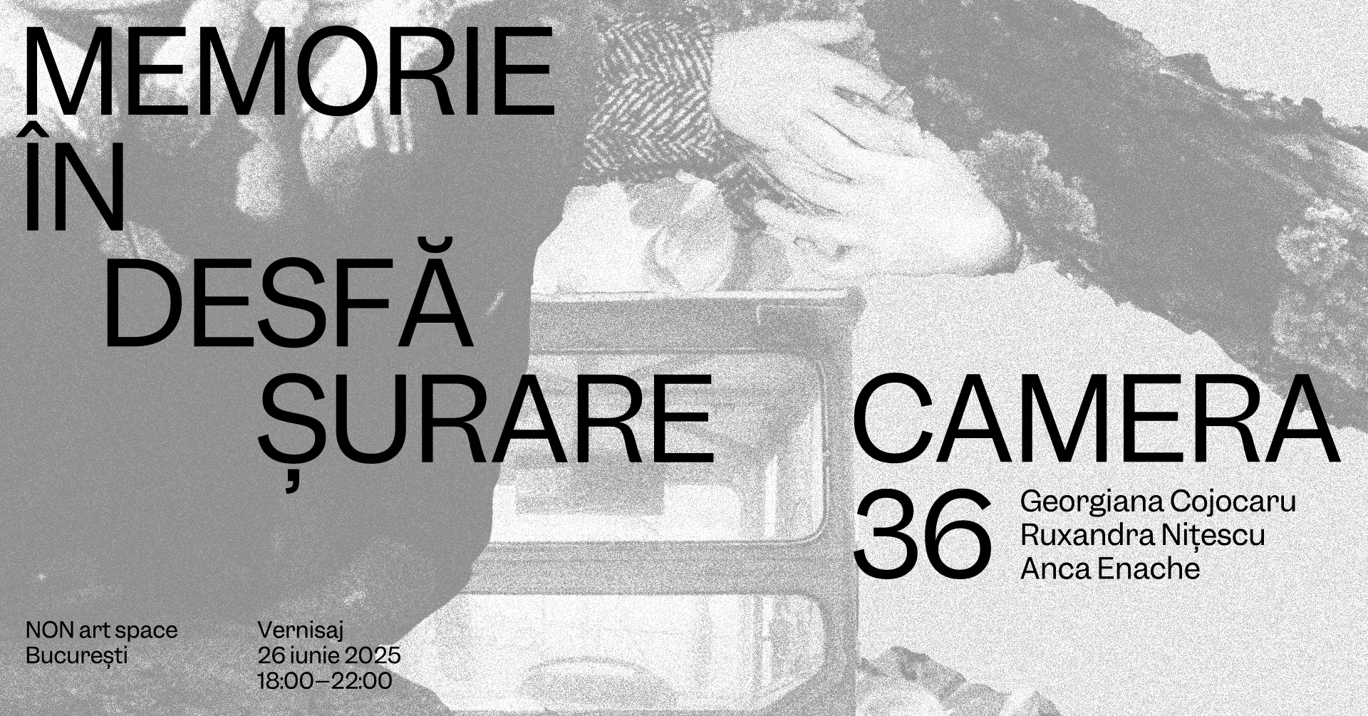 Pe 26 iunie, între orele 18:00 și 22:00, spațiul NON art space găzduiește deschiderea expoziției CAMERA 36: unfolding memory, prima expoziție a colectivului artistic Camera 36 format din Georgiana Cojocaru, Ruxandra Nițescu și Anca Enache, artiști care explorează medii artistice diferite de la fotografie la instalație și mixed media.