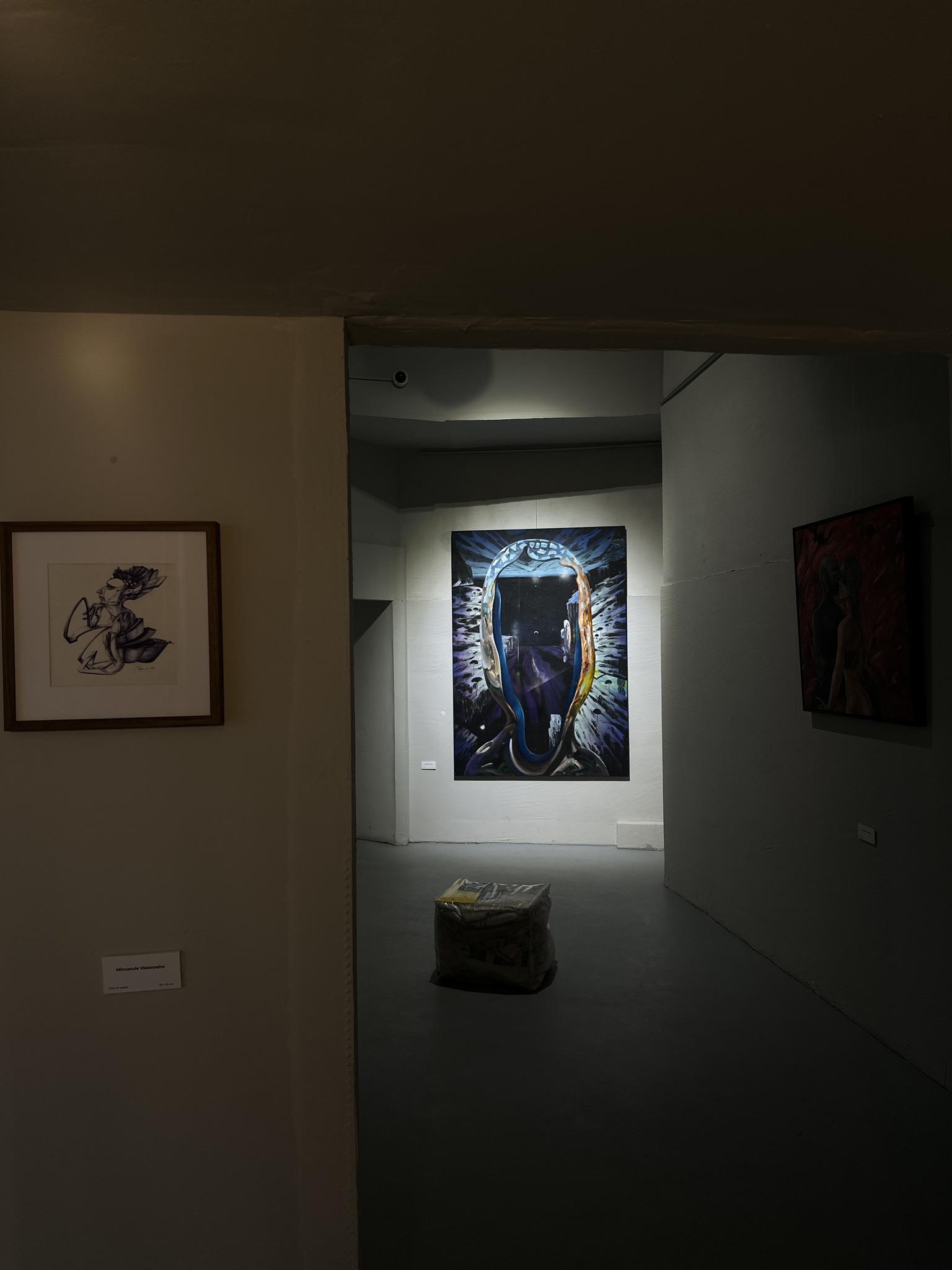 Expoziția reunește lucrări reprezentative din parcursul artistic al lui Flaviu Moldovan, incluzând piese precum „Guernica 2016”, o reinterpretare a capodoperei lui Picasso ca răspuns la un război invizibil, „Actress, the 1st”, un portret al unui DJ văzut ca o entitate mistică a erei clubbing, și „Drumul spre centru”, un autoportret simbolic despre filtrarea și interpretarea informațiilor.