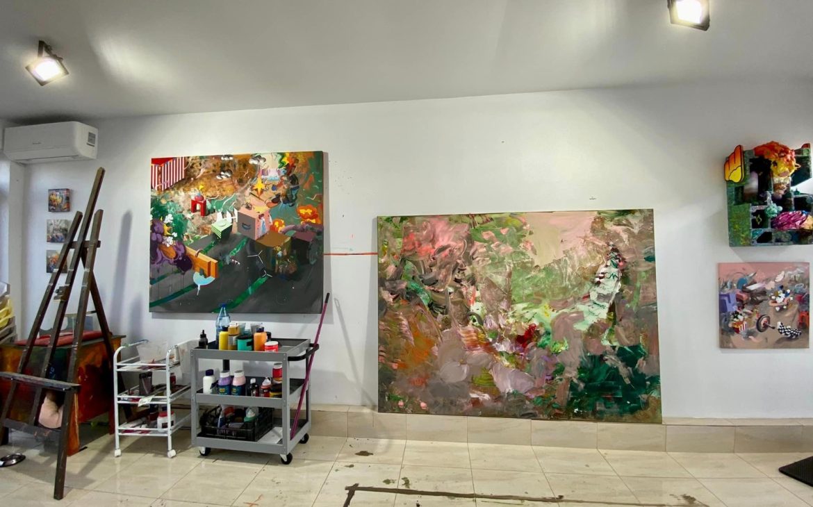 Radu PANDELE: “Niciodată nu prea am putut s[ lucrez la facultate, datorită faptului că era înghesuială foarte mare în ateliere, haos, petreceri. În liceu îmi amintesc că rămâneam singur mereu peste program până noaptea. M-am simțit destul de confortabil să pictez și acasă însă, niciodată nu a fost asta o scuză să nu lucrez.”
