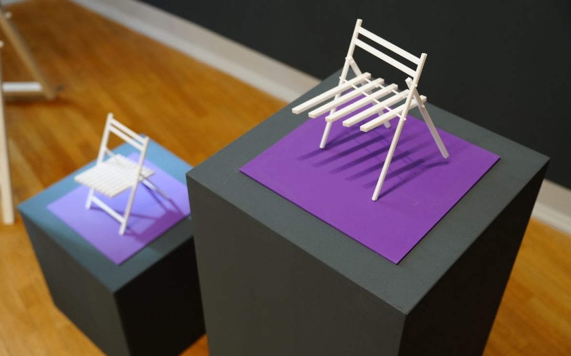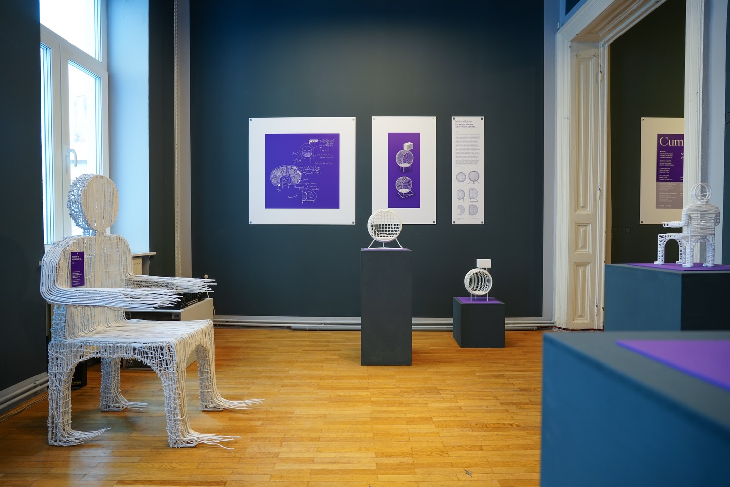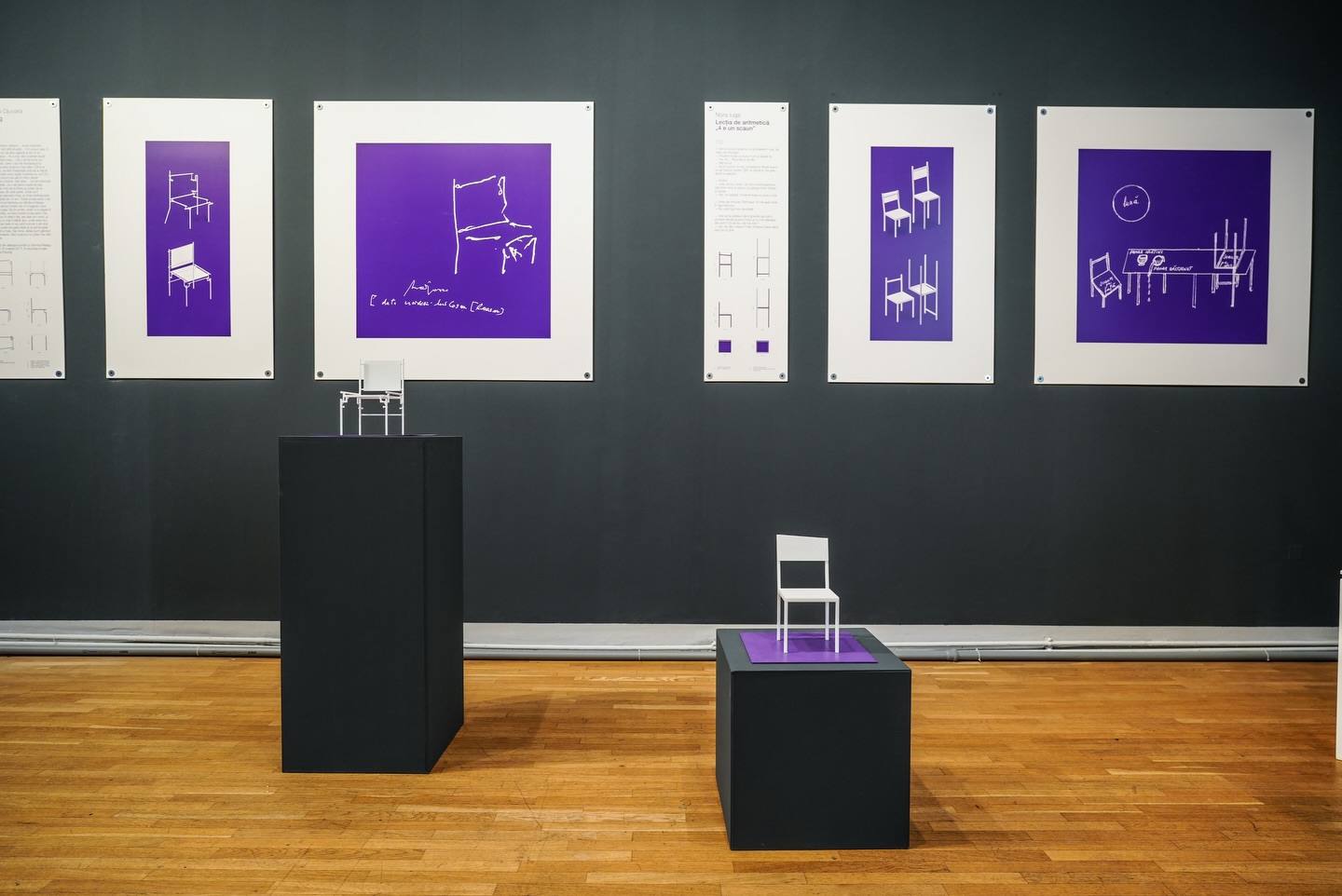 Plimbare prin text imprimat pe pereți și printre miniaturi imprimate în spațiu. Deambulare printre locuri de stat devenite subiecte ale întrebării ”Cum stai?”.