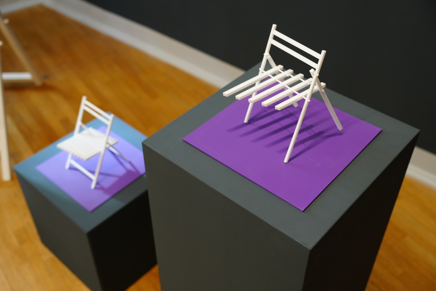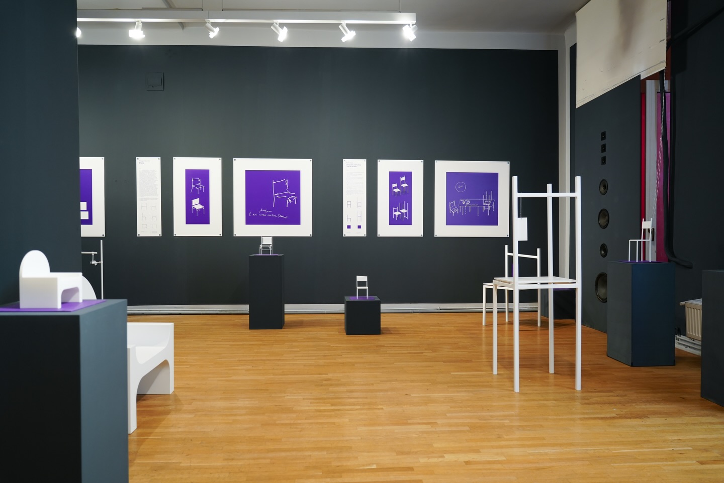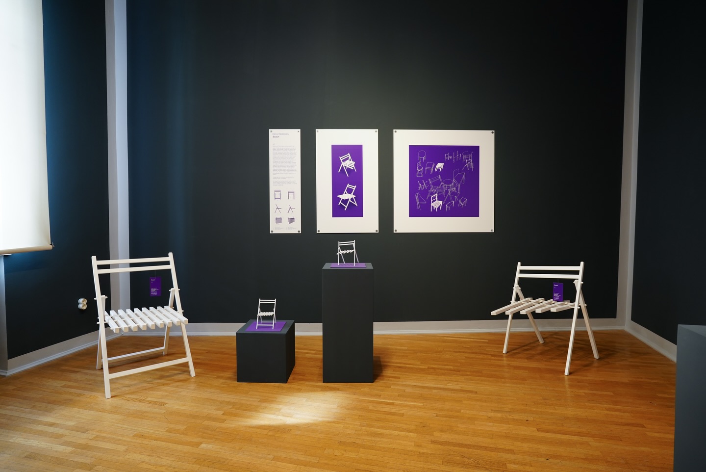 Plimbare prin text imprimat pe pereți și printre miniaturi imprimate în spațiu. Deambulare printre locuri de stat devenite subiecte ale întrebării ”Cum stai?”.