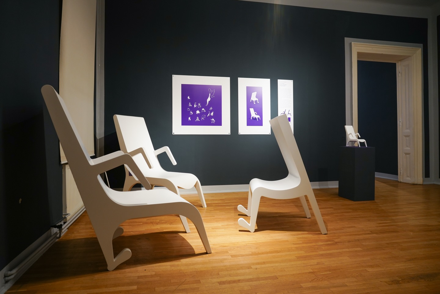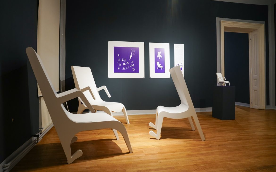 Scaune personaj, pe post de exponate în mijlocul unei case panotate cu extrase dintr-o carte la limitele (și în același timp la intersecțiile neeuclidiene) dintre povești, ilustrații și tipare de bricolaj.”