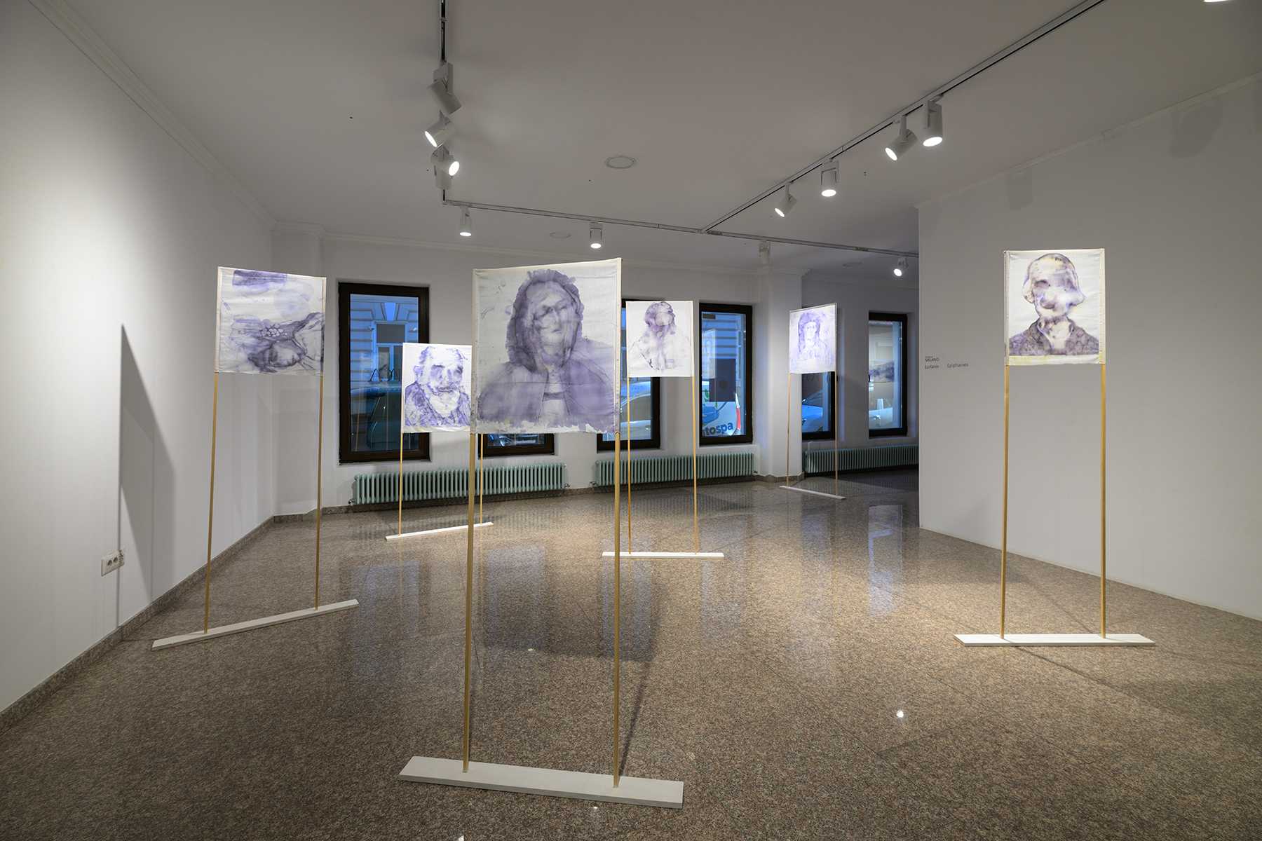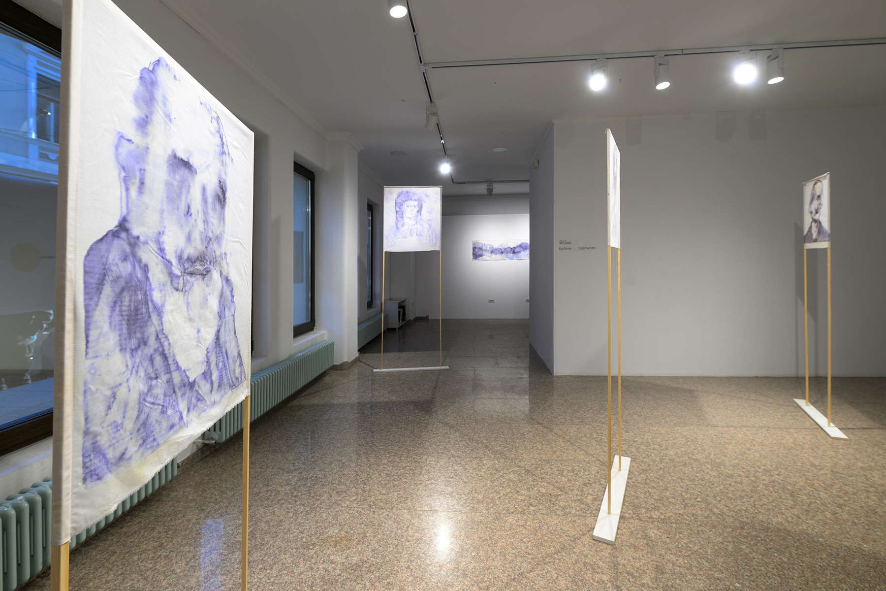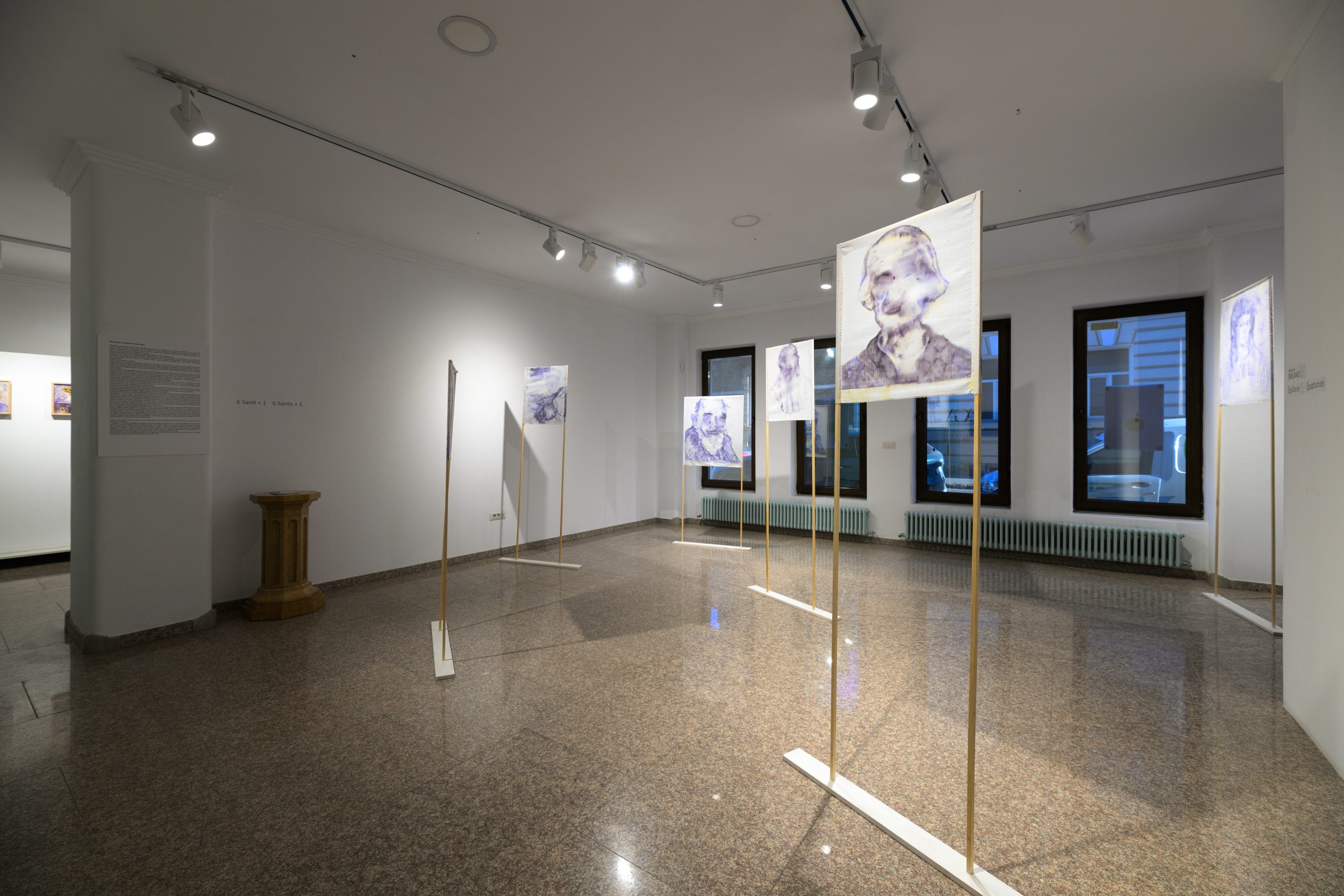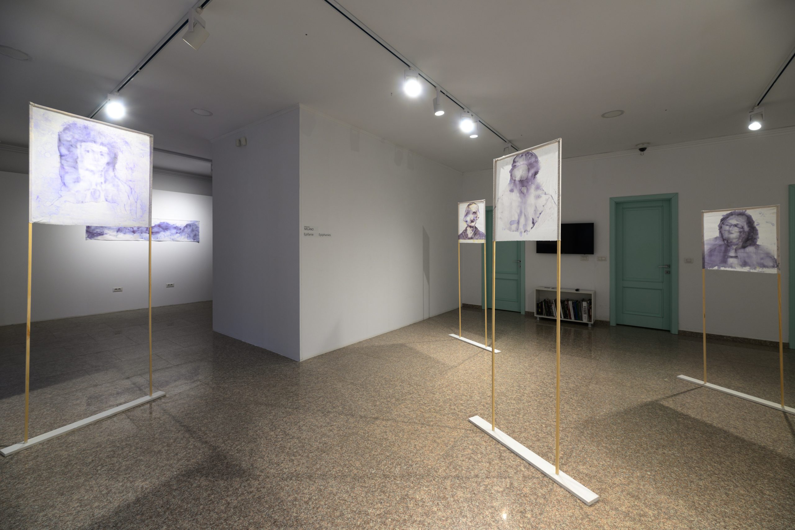 Șapte giulgiuri picturale, dintre care șase vor fi dezvăluite în dubla lor identitate, datorită instalației studiate în sala centrală a galeriei: vizitatorul va putea, cu adevărat, să observe fața fiecărei lucrări, confruntându-se cu pictura lentă și complexă a lui Milano, și apoi să se afle în prezența a ceea ce nu este de obicei accesibil, spatele tabloului, unde are loc procesul de transformare a materiei picturale.