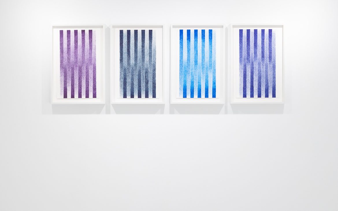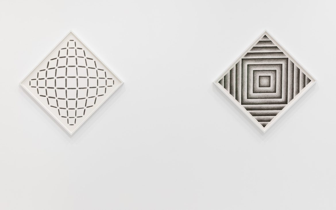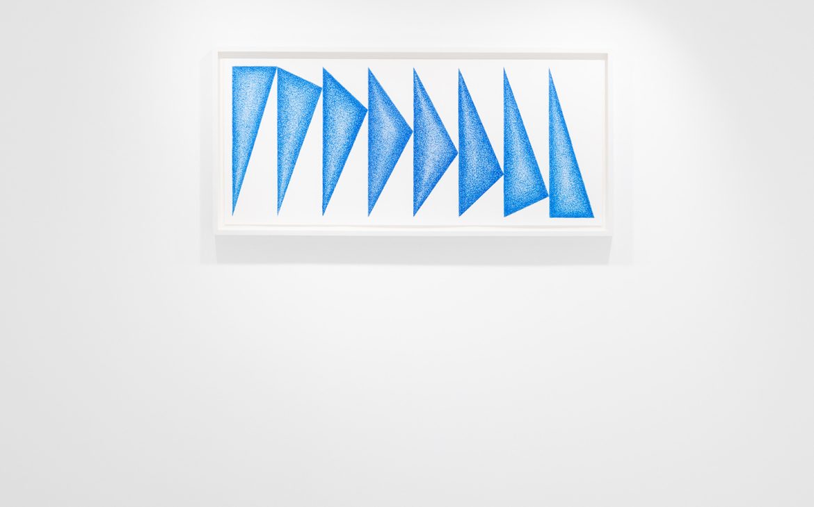 În celelalte desene din expoziție, Uriarte își limitează paleta la tonuri de albastru sau negru și recurge la forme geometrice (triunghiuri, pătrate, cercuri și semicercuri) pentru a se juca cu percepția vizuală a privitorului sau pentru a crea structuri din motive repetate. Construcția spațiului este adesea preocuparea sa principală în aceste lucrări, alături de chestiunea forțelor dinamice ce influențează direcția sau stabilitatea unui sistem. (text curatorial)