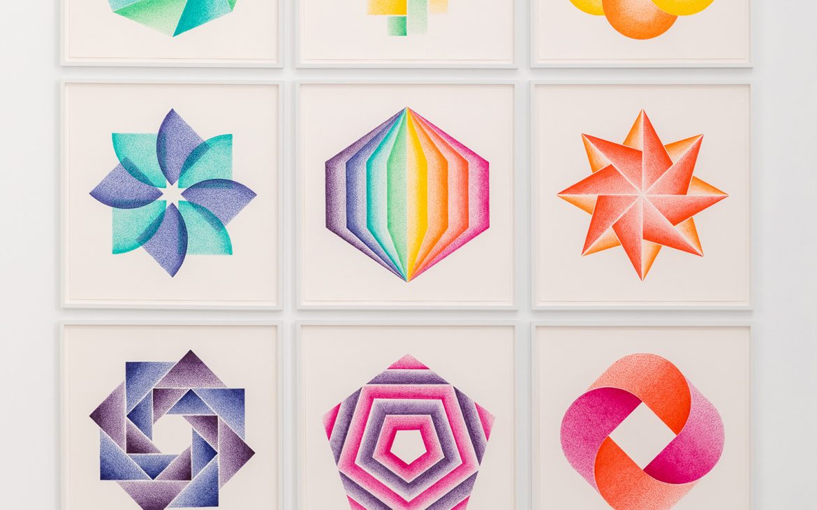 Cele 9 desene care dau titlul expoziției formează un grup de simboluri ce trimit la istoria designului grafic, dar pot fi asociate și cu semne cvasi-religioase. Sursa principală de inspirație o reprezintă logo-uri din anii ’50-’60, când un nou limbaj de design, caracterizat prin simplificare formală și optimism postbelic, a apărut. O altă posibilă interpretare, legată de iconografia spiritualității, se naște din iluzia unei lumini care ar părea să radieze din formele desenate. Noutatea cea mai evidentă este jocul cromatic creat de Uriarte pentru acest grup de lucrări – în cuvintele artistului, ele sunt „o călătorie prin culorile curcubeului”, inspirată de joaca cu fiica lui cea mare.