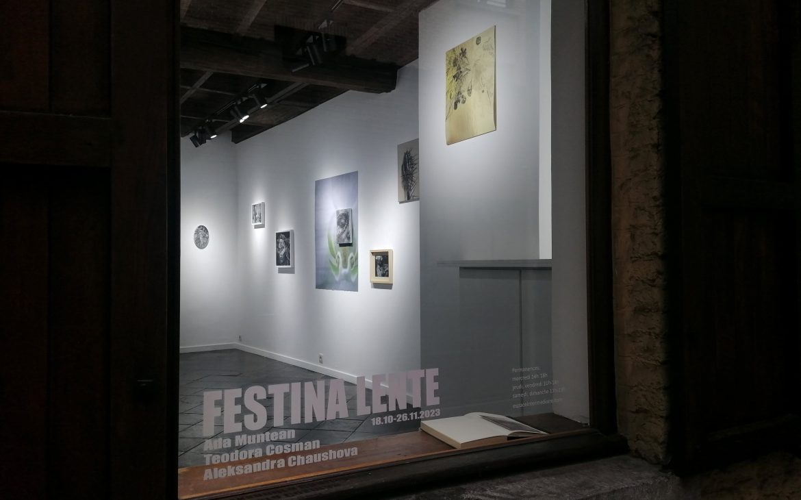 Corpul de lucrări prezentat în expoziția de grup Festina lente este rezultatul unei observații atât de intense și lente (și regulate, și repetitive), fie că sunt „autoportretele” meticulos desenate ale Aleksandrei Chaushova, fie reprezentările ex-statice ale Adei Muntean sau studiile luminoase ale Teodorei Cosman.