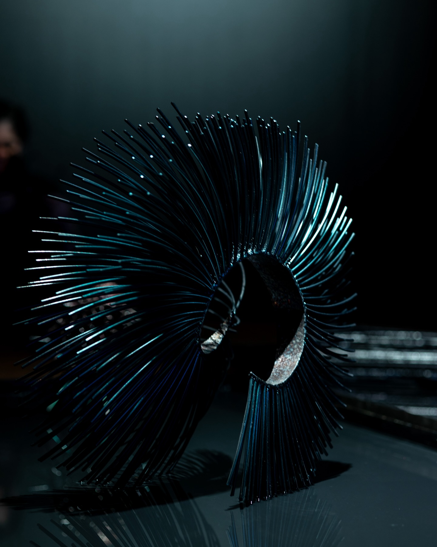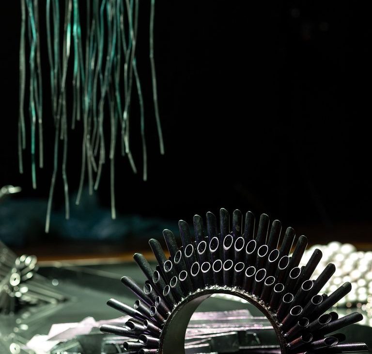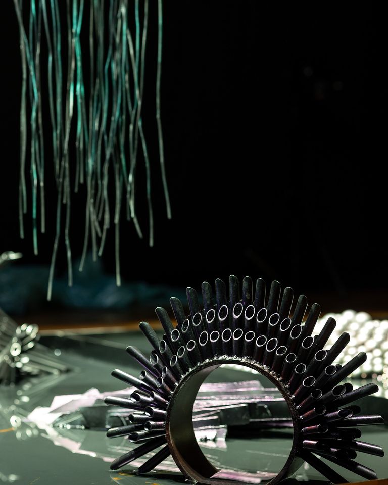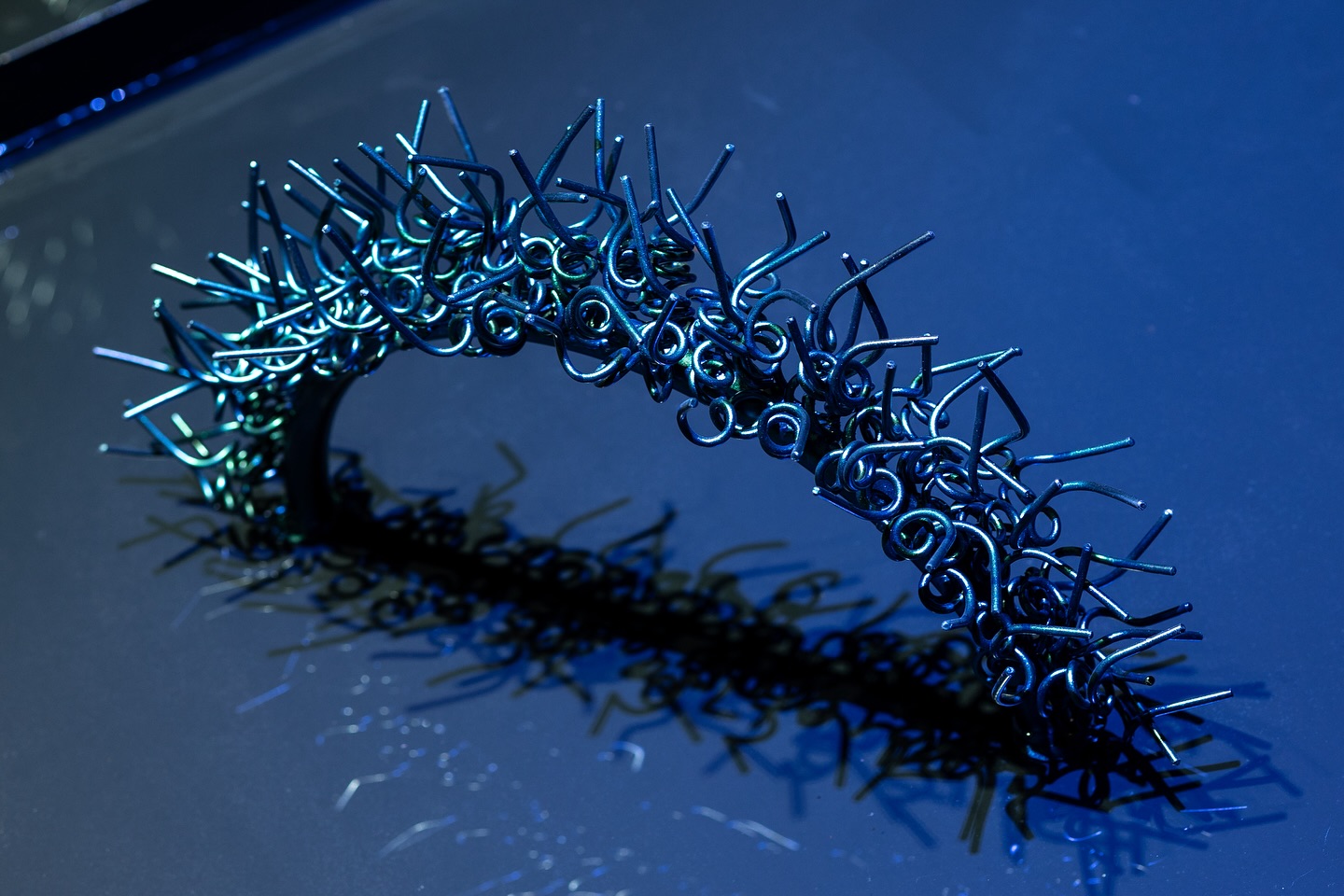 Expoziția implică, atât din perspectiva panotării, cât și din cea a logicii narative, o abordare multi-senzorială prin intermediul unei complexe instalații vizuale, atent racordată la spațiu, care implică: obiect, sound design, light design și proiecții video; intenția artistei fiind aceea de a crea un spațiu pluri-sensibil în care spectatorul să fie integrat complet în această reinterpretare a peisajului arctic. Lucrările surprind prin tactilitate; fiecare organism emite, redă incomplet și denaturat reminiscența unei structuri complexe, a unor formațiuni epidemice a căror organicitate este reprodusă în metal, cu diferite aliaje.