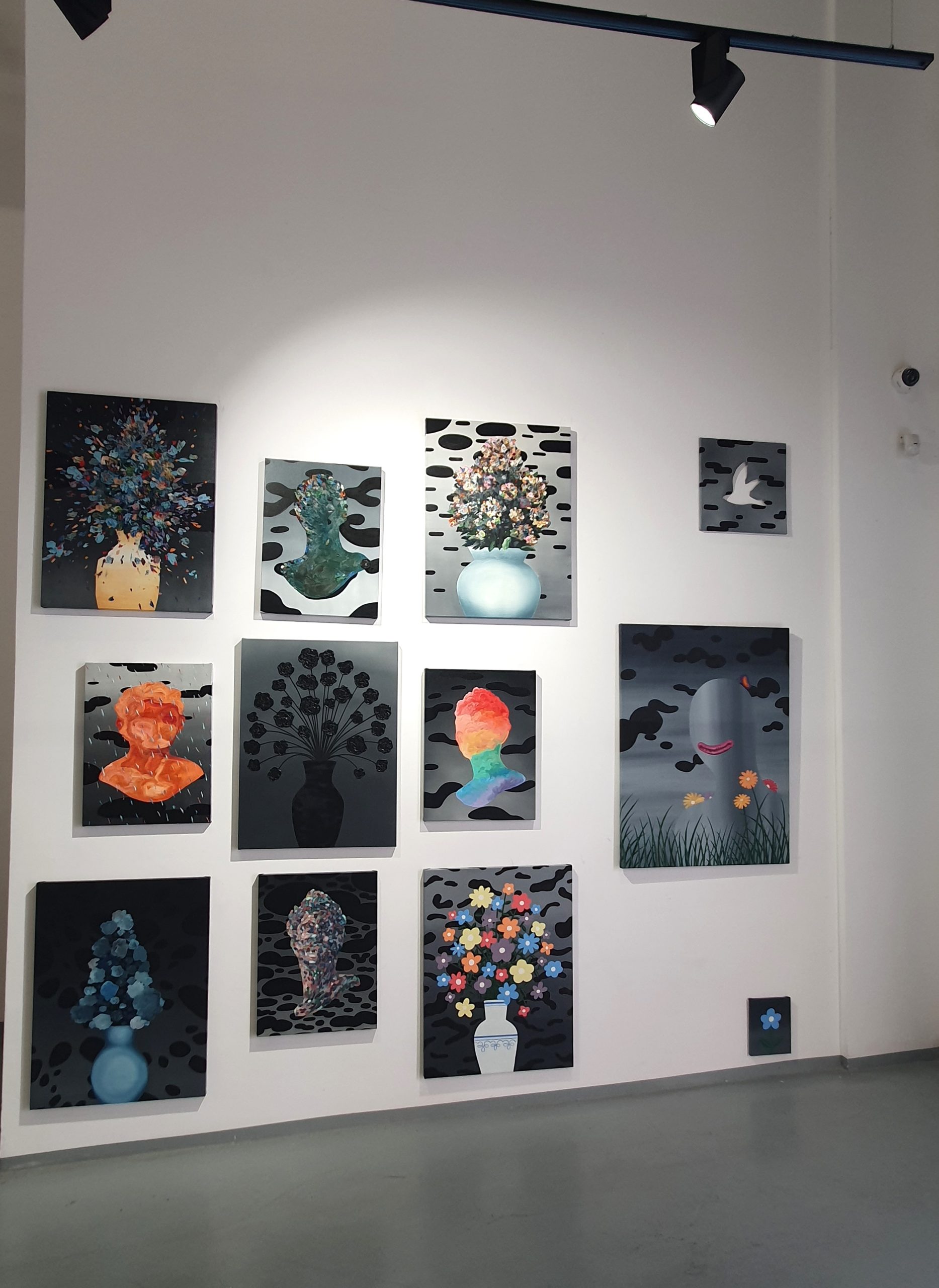 Griul este un refren. Este un teren de joacă. Este un sol fertil pentru orice îl interesează mai presant pe artist, născând multiple subteme și infinite posibilități. El creează un efect de colaj prin suprapunerea unor forme, ca decupate, care îl fragmentează. El aduce în discuție un duel între culoare și non-culoare, între plat și pictural, parcurgând linia fină dintre armonie și disonanță, ordine versus haos, plăcut versus neplăcut.” – Andreea Eliza Petrov