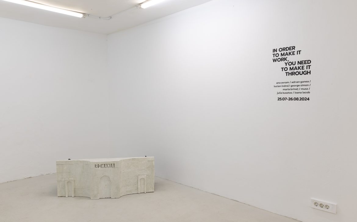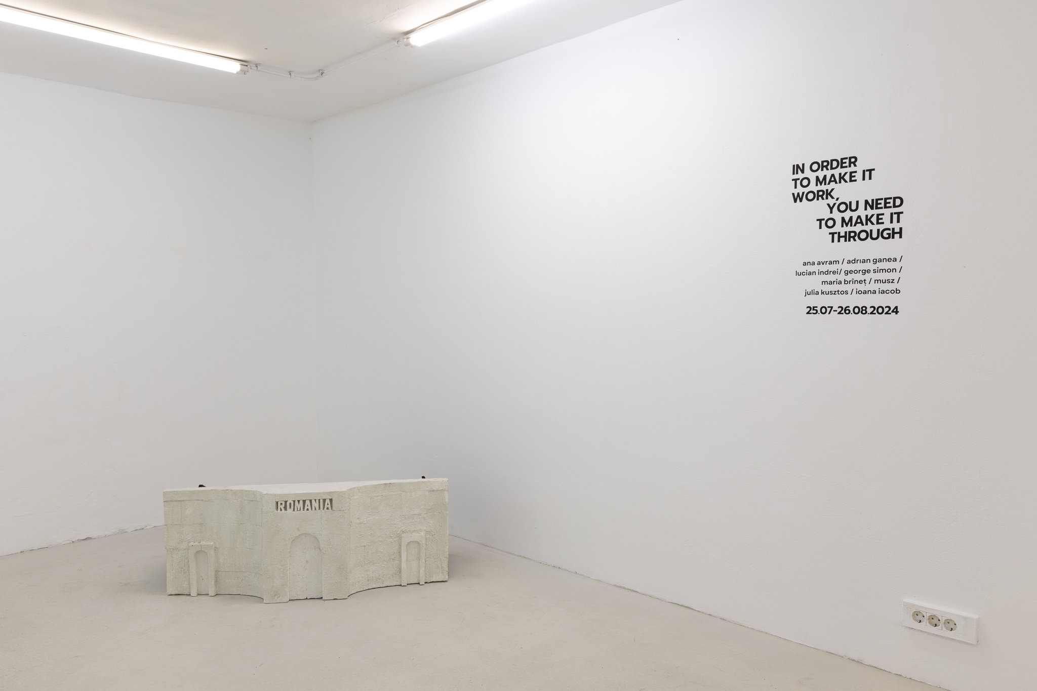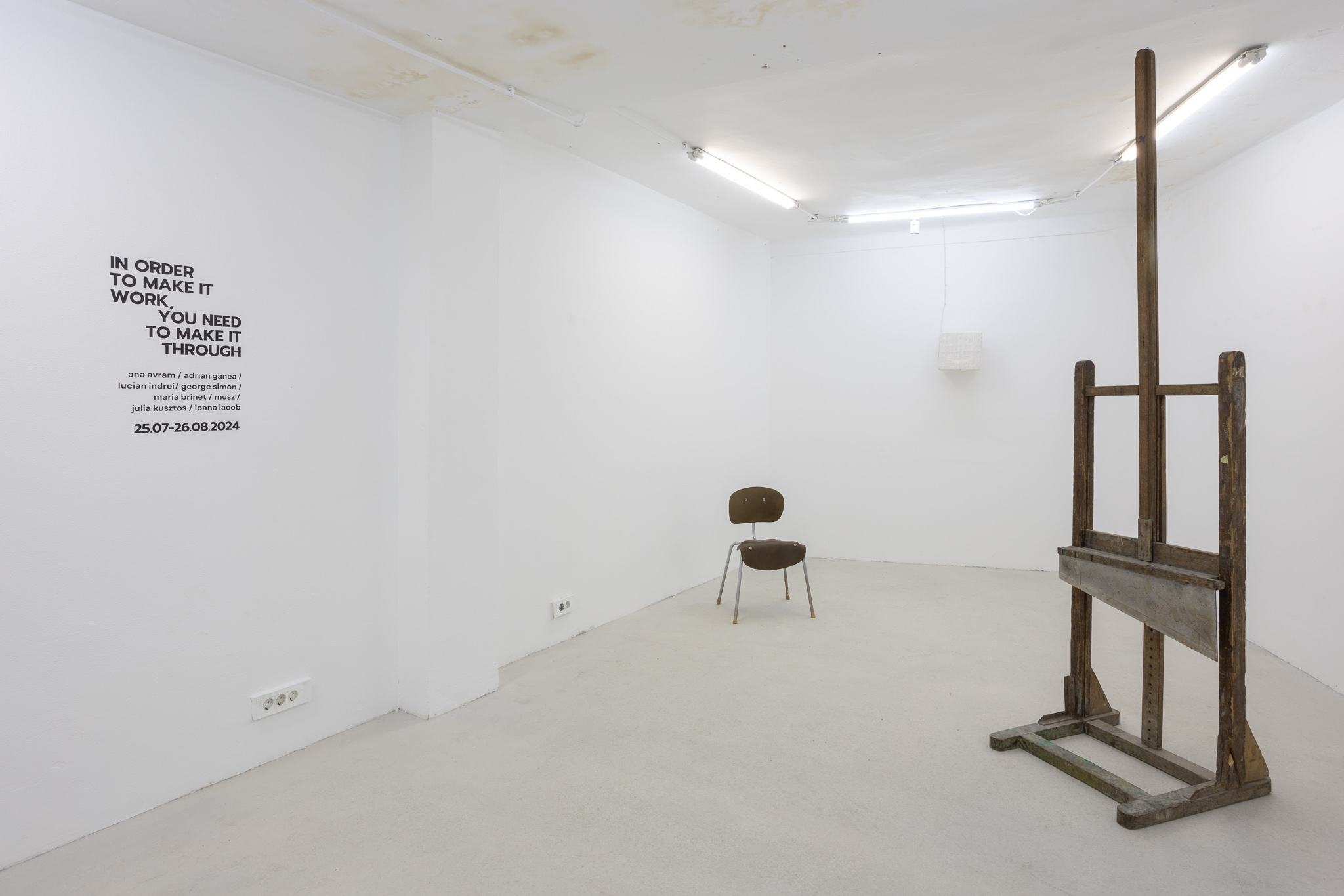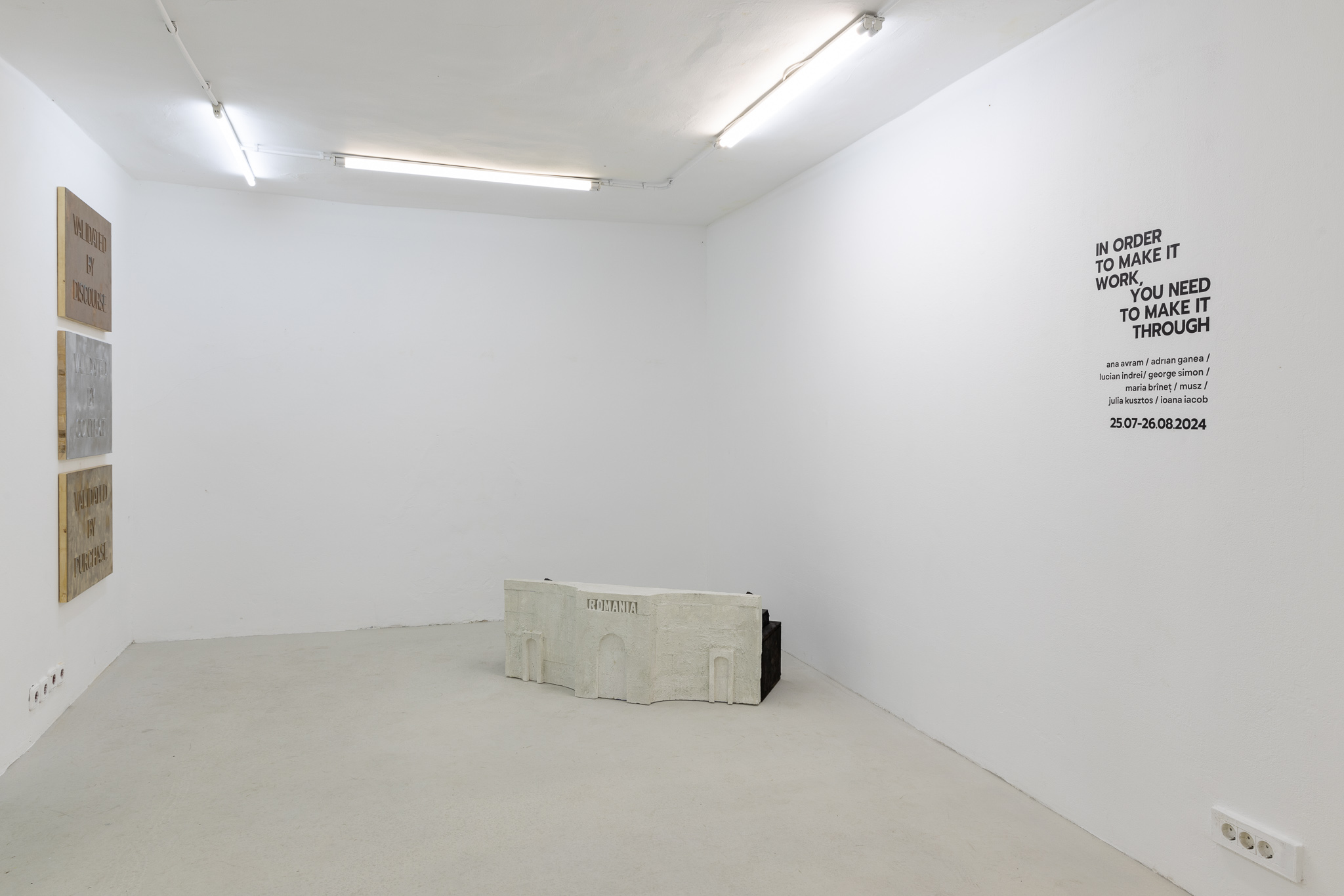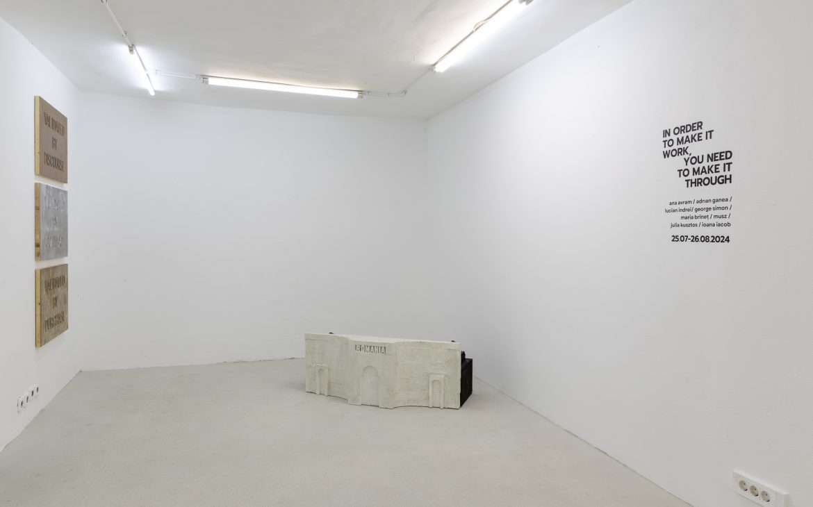 Expoziția chestionează poziția artistului și producția de artă în capitalism, dar și căderea în irelevanță a unor medii ce devin înlocuite de diverse mijloace orientate către eficiență, serialitate, rapiditate și spectacular. E nevoie să ne supra-specializăm, să producem în masă, să ne ‘branduim’ și să ne ‘marketăm’? Care sunt mecanismele prin care putem totuși să ne asigurăm continuitatea și încrederea de a continua acest domeniu? Putem vorbi despre artă în afara contextului monetar, și poate exista compasiune față de exterior odată asimilați hiperindividualizării? Cum alegem să producem artă în măsura presiunilor culturale de a ne autodepăși constant? Acestea sunt câteva din întrebările căruia expoziția In Order to Make it Work, You Need to Make it Through încearcă să le răspundă.