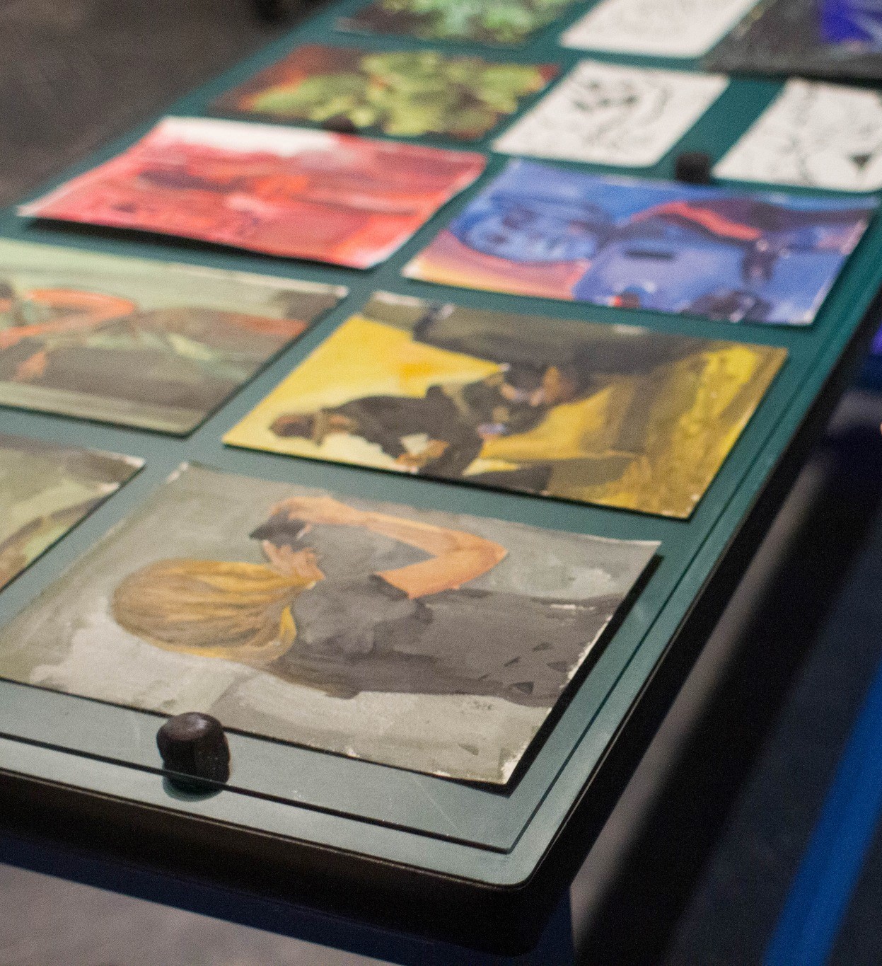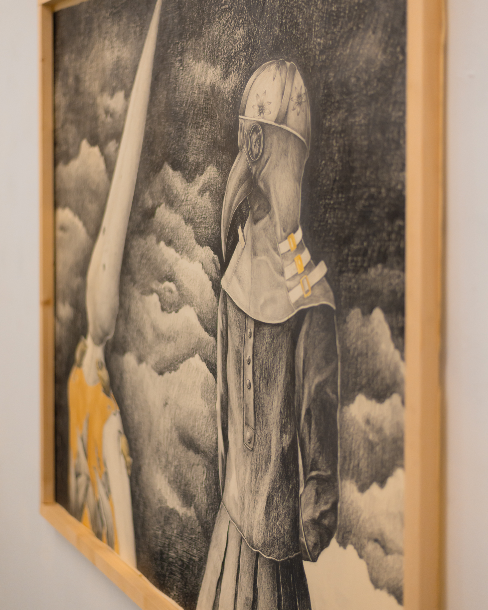 Intensitatea ciocnirii dintre multiplele exemple de violență „obiectivă”, cauzată dar și trăită în colectiv este prezentă în lucrările în creion pe hârtie, „The Plague” și „The Match Man”, de Lucian Szekely-Rafan. Oana Maria Pop narează periplul dificil de părăsire a locului natal în speranța asigurării unei vieți mai bune prin seria „Homesick Migrant I, II și III”.