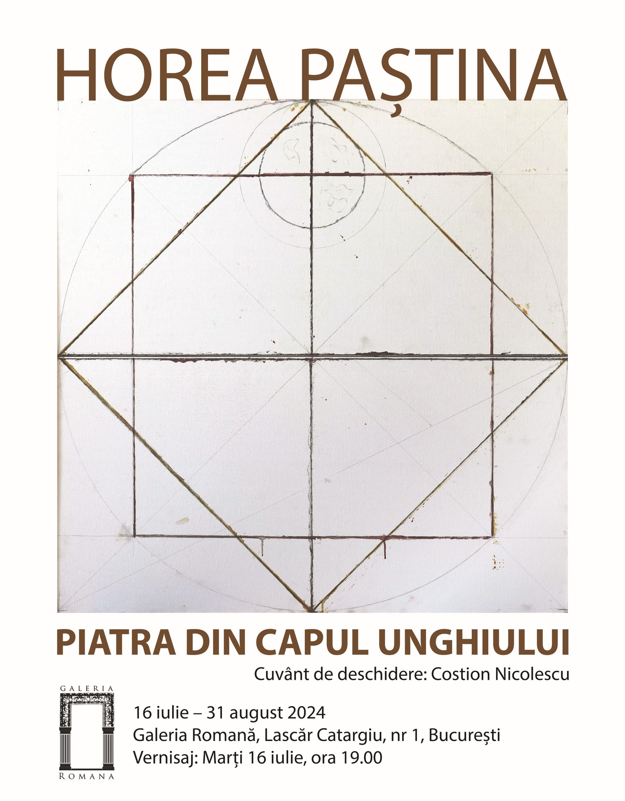 Galeria Romană are plăcerea de a vă invita la vernisajul expoziției “Piatra din capul unghiului”, a pictorului Horea Paștina, programat marți, 16 iulie, începând cu ora 19:00. În deschidere va lua cuvântul dl. Costion Nicolescu.
