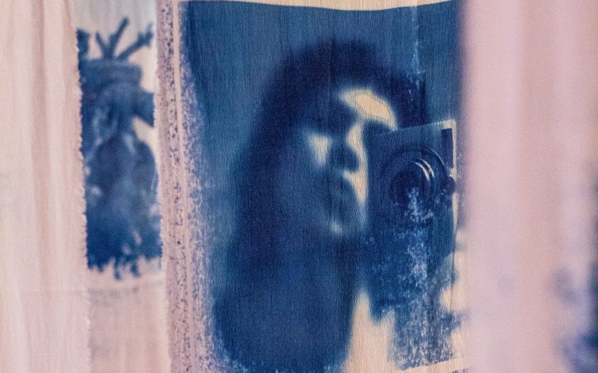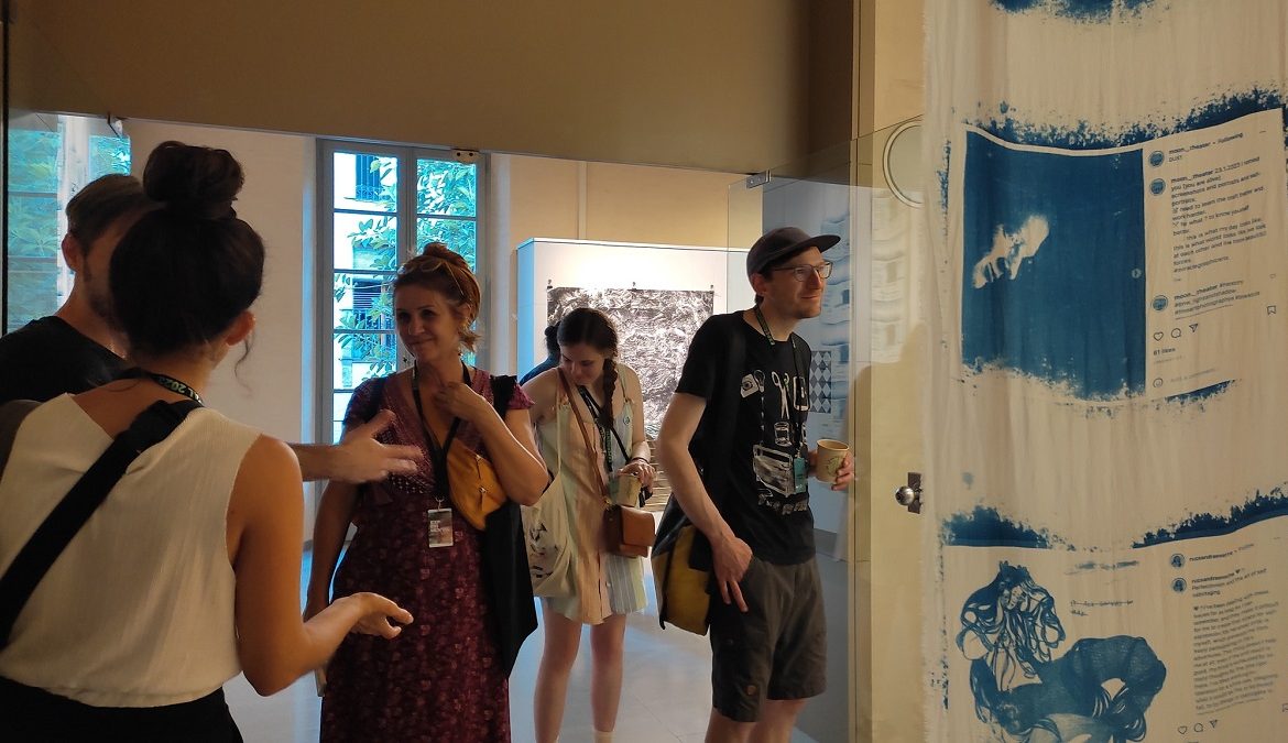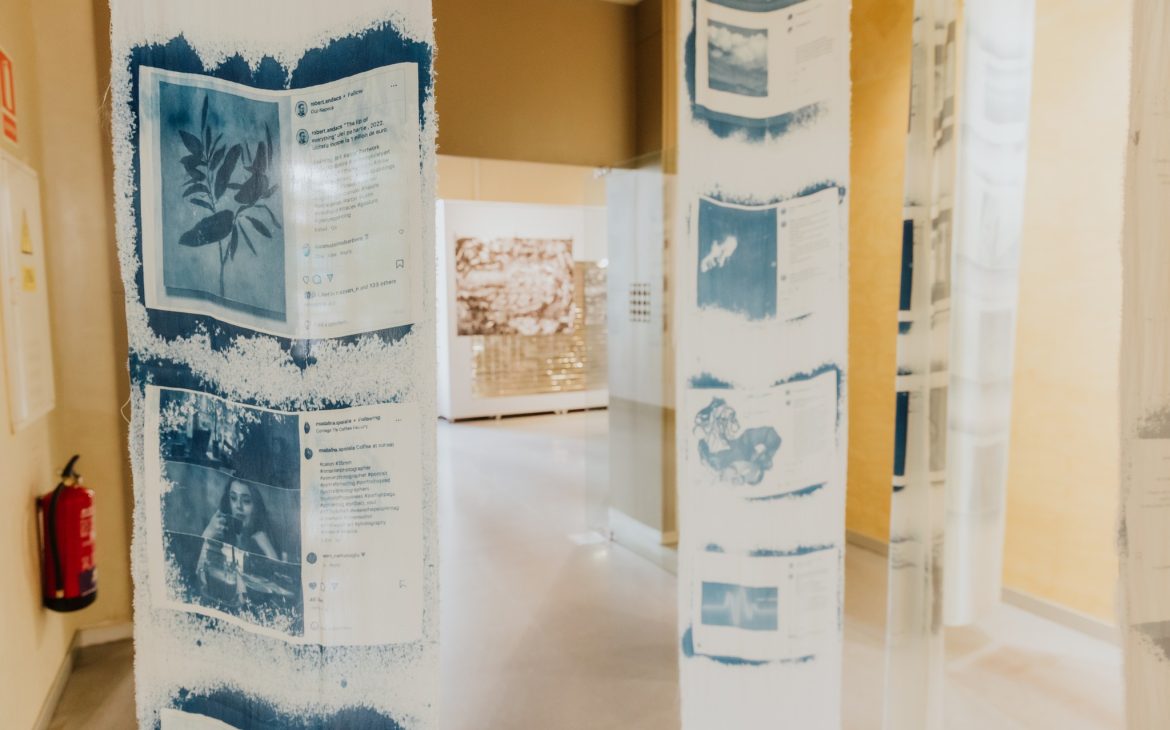 Aducând la un loc analogul și digitalul, imaginile digitally native sau digitalizate sunt aduse în mediul fizic în Share, Tag or Dye Again printr-o tehnică fotografică nu doar sustenabilă, ci și cu o istorie de 180 de ani – cianotipia, bazată pe săruri feroase care sunt sensibile la UV și din care rezultă imagini de un albastru specific.
