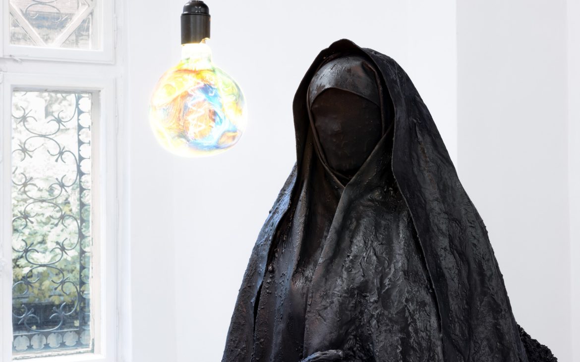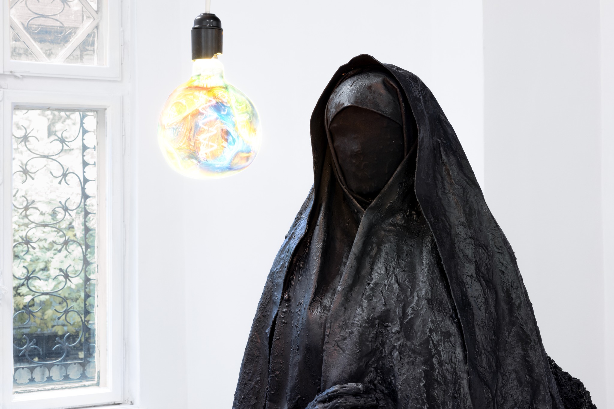 𝐌𝐨𝐧𝐨 𝐌𝐢𝐡𝐚𝐢 direcționează cercetarea mai acut către sfera politică, investigând mecanismele prin care o acțiune spontană în spațiul public ajunge să fie percepută drept un protest, un gest de rebeliune față de puterea autoritară, care va reacționa mereu în forță. El trasează o paralelă între povestea biblică pe care o evocă Steaua de Crăciun și situația refugiaților din prezent, propunând un „monument al mamei refugiate” ancorat simbolic în realități dramatice ale prezentului, precum criza umanitară din Gaza și acțiunile transnaționale de solidarizare cu cauza palestiniană.” (text curatorial)