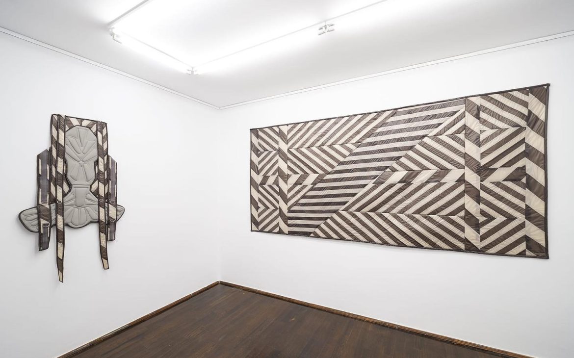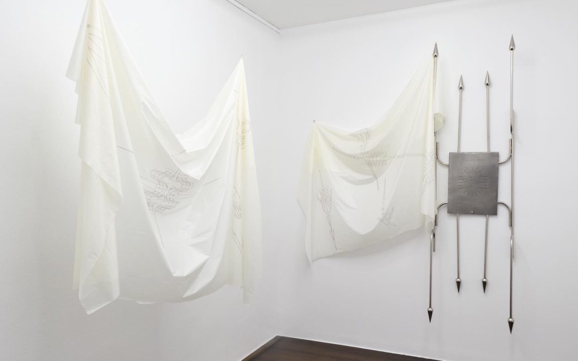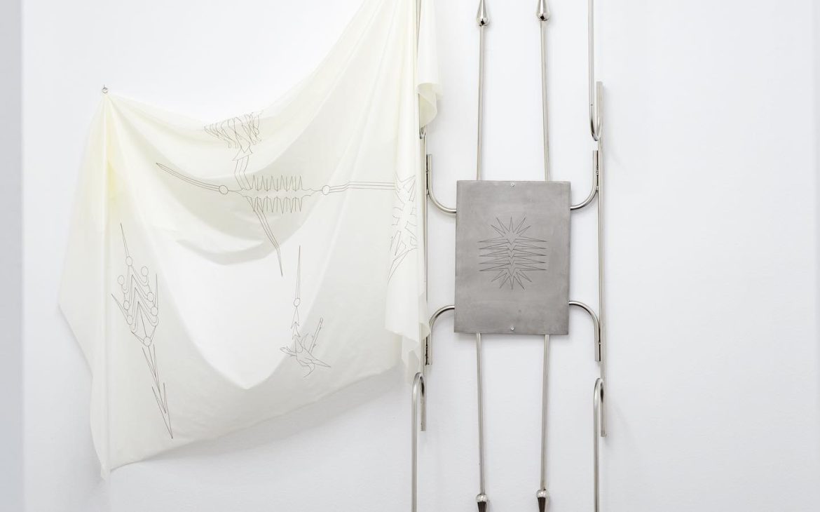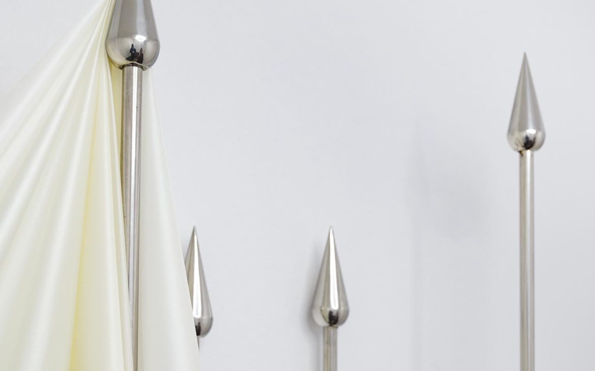 “Sword Swallowing Acrobat” analizează posibilitățile de optimizare și de automatizare ale corpului și ideologiile seducătoare din spatele acestor dorințe de schimbare. Giulia Crețulescu își menține interesul pentru ergonomiile adaptării și pentru desenul tehnic. Căptușeli moi, articulații durabile și pliuri fluide, tapiserii inspirate din semnalistica industrială sau cilindrii liniei de producție – dezvăluie principiul eficientizării maximale angrenat în designului obiectelor cotidiene. Totodată, ele vorbesc despre corp și fac trimitere la un transfer alchimic de proprietăți între agenți umani și non-umani. Despre a deveni corp, a deveni mecanism, a deveni prelucrat. Dincolo de utilizarea lor normativă, aceste elemente devin obiecte totemice.” – fragment din textul tradus al lui Edith Lázár