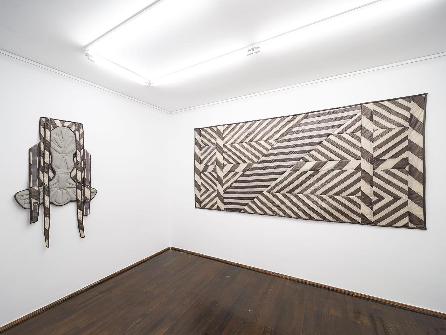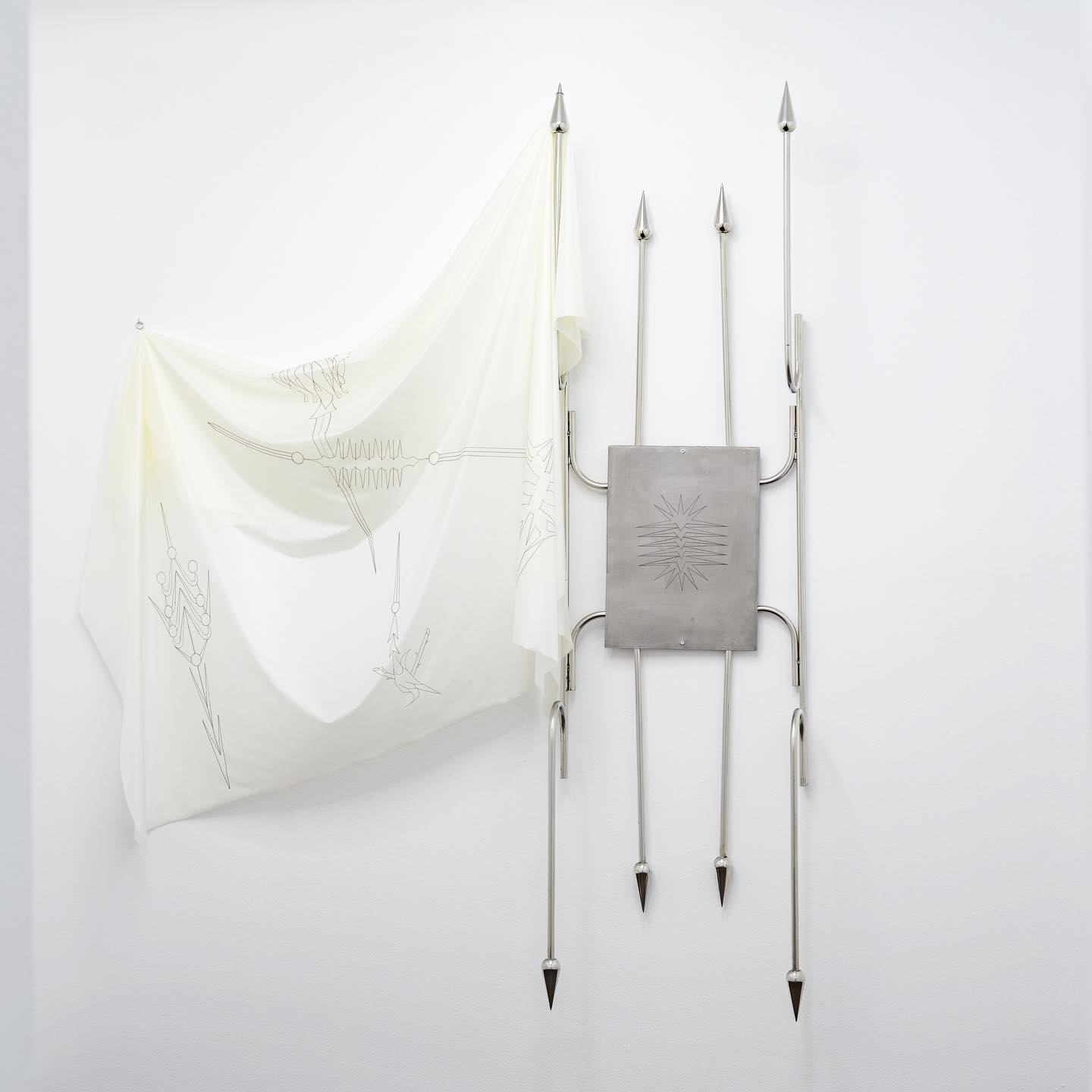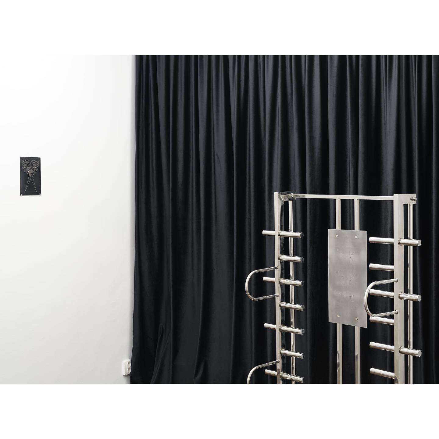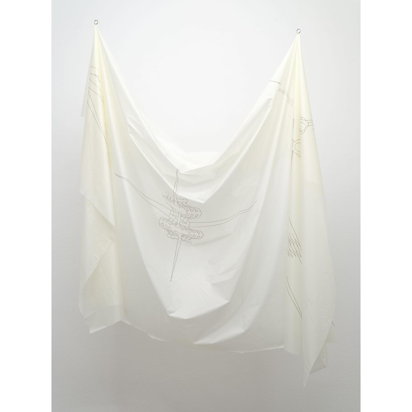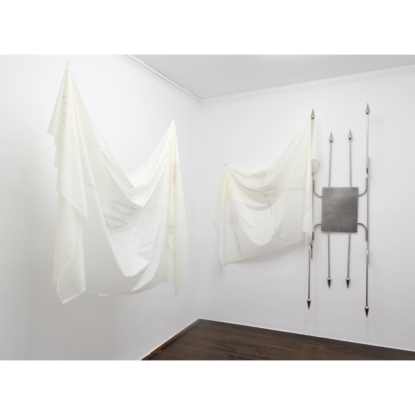 “Sword Swallowing Acrobat” analizează posibilitățile de optimizare și de automatizare ale corpului și ideologiile seducătoare din spatele acestor dorințe de schimbare. Giulia Crețulescu își menține interesul pentru ergonomiile adaptării și pentru desenul tehnic. Căptușeli moi, articulații durabile și pliuri fluide, tapiserii inspirate din semnalistica industrială sau cilindrii liniei de producție – dezvăluie principiul eficientizării maximale angrenat în designului obiectelor cotidiene. Totodată, ele vorbesc despre corp și fac trimitere la un transfer alchimic de proprietăți între agenți umani și non-umani. Despre a deveni corp, a deveni mecanism, a deveni prelucrat. Dincolo de utilizarea lor normativă, aceste elemente devin obiecte totemice.” – fragment din textul tradus al lui Edith Lázár