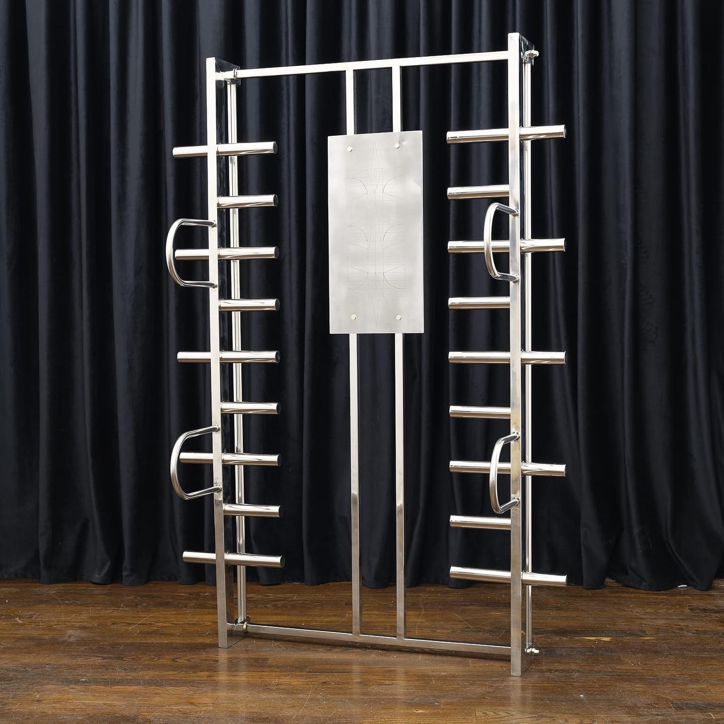 Zina Gallery prezintă prima expoziție personală a Giuliei Crețulescu „Sword Swallowing Acrobat“. Evenimentul expozițional propune o nouă serie de instalații ale artistei, din textil și metal, care continuă investigarea sa estetică asupra designului ergonomic și a aspectelor sale antropologice. Giulia Crețulescu își îndreaptă acum atenția înspre mecanica îmbunătățirii corporale folosită în Pilates sau fitness, văzută ca simptom al reciprocității dintre om și dispozitiv.