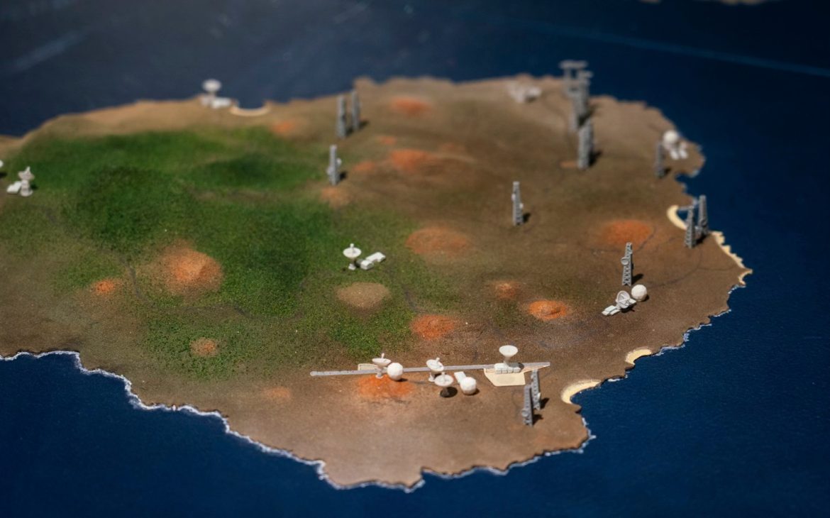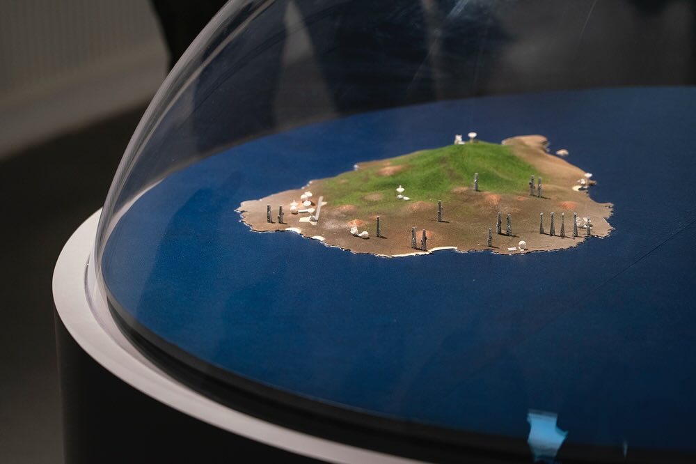 Empire’s Island (2023) spune povestea insulei Ascension, situată în mijlocul Oceanului Atlantic, printr-o serie de mișcări telescopice care se apropie mai întâi de acest petic de pământ și de istoria sa, iar apoi se îndepărtează pentru a cuprinde scara imperiului, a planetei și a stratosferei. Un model dublu al insulei – aridă și nelocuită în stânga, transformată, prin intervenții geologice și tehnologice, în dreapta –, însoțit de un eseu video, sugerează o istorie recursivă a acestui loc îndepărtat, al cărui trecut s-ar putea întoarce ca viitorul nostru. De-a lungul secolelor, insula a fost modificată în funcție de interesele ideologice, economice și militare dictate de evoluția unei structuri globale de putere. Această istorie a început cu imperiul olandez, care a folosit insula neprimitoare drept penitenciar, pentru a exila – și, indirect, a condamna la moarte – membri ai echipajului Companiei Indiilor Orientale, și a continuat cu imperiul britanic, pentru care Charles Darwin a modificat climatul insulei, plantând aici sute de copaci aduși de la Grădinile Botanice Regale din Londra, copaci care fuseseră adunați anterior din toate coloniile britanice.