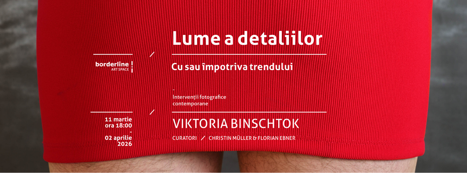 La Borderline Art Space din Iași se deschide miercuri, 11 martie, de la ora 18:00, expoziția „Lume a detaliilor. Cu sau împotriva trendului – Intervenții fotografice contemporane”, un solo show Viktoria Binschtok, curtoriat de Christin Müller și Florian Ebner.