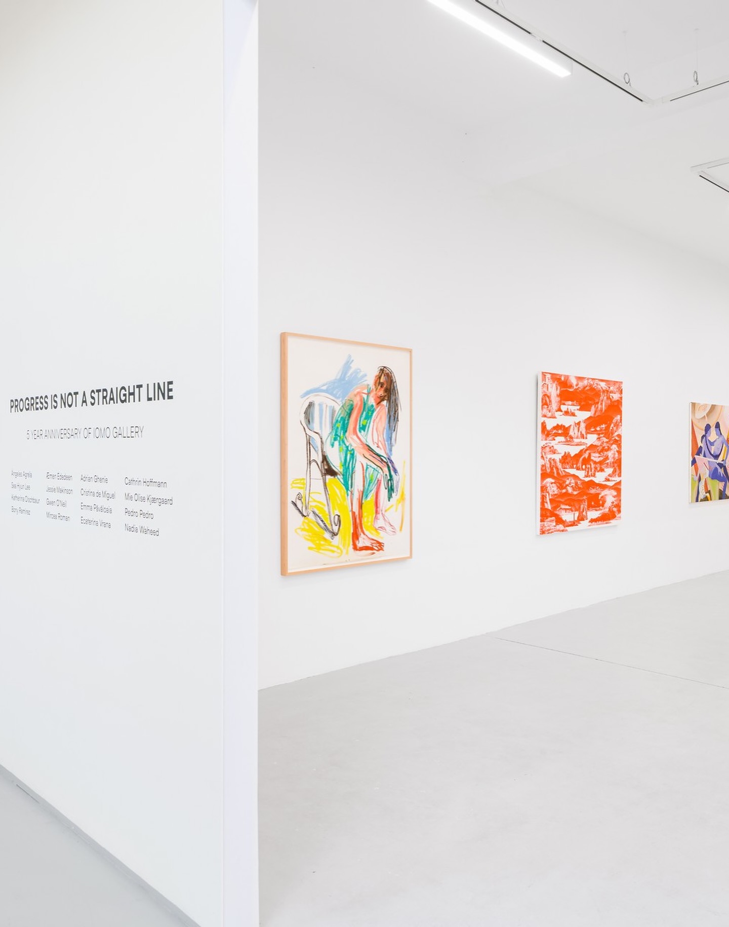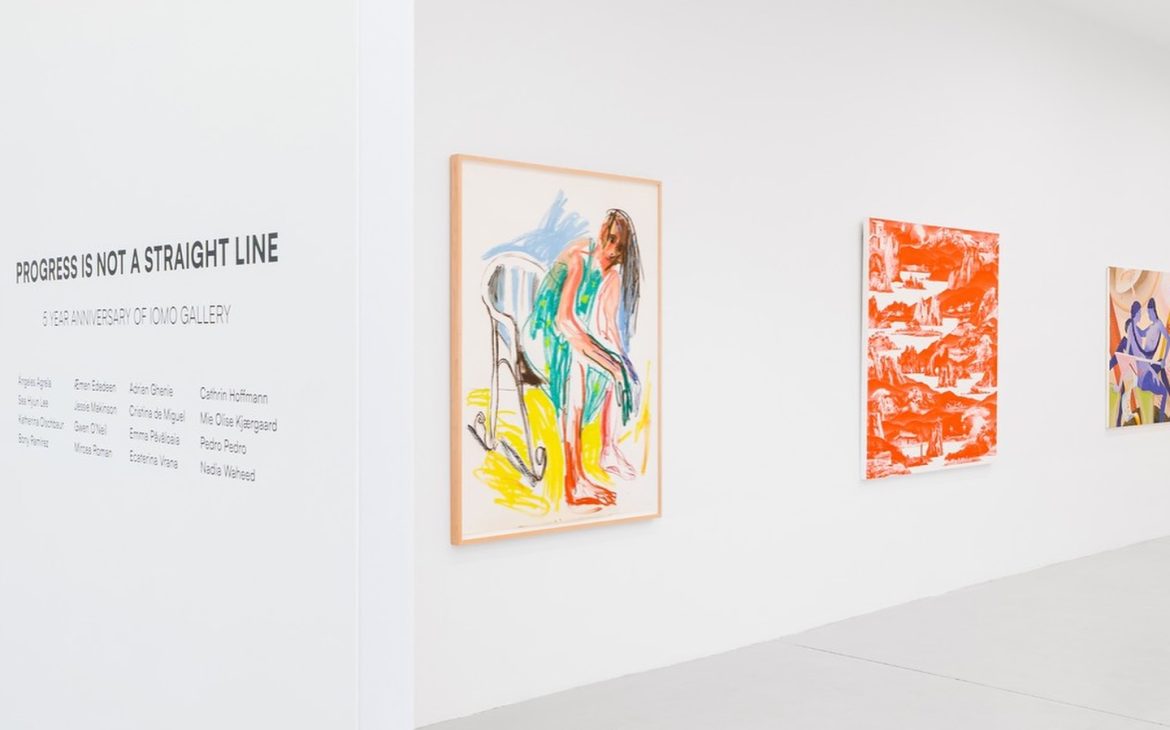 Galeria IOMO marchează cinci ani de activitate și program artistic cu expoziția de grup „Progress Is Not A Straight Line”, eveniment ce reunește atât lucrări noi, cât și lucrări din colecția fondatorului galeriei, Florin Petrachi. Expoziția include lucrări semnate de Ángeles Agrela, Æmen Ededéen, Adrian Ghenie, Cathrin Hoffmann, Sea Hyun Lee, Jessie Makinson, Cristina de Miguel, Mie Olise Kjærgaard, Katherina Olschbaur, Gwen O’Neil, Emma Păvăloaia, Pedro Pedro, Bony Ramirez, Mircea Roman, Ecaterina Vrana și Nadia Waheed.