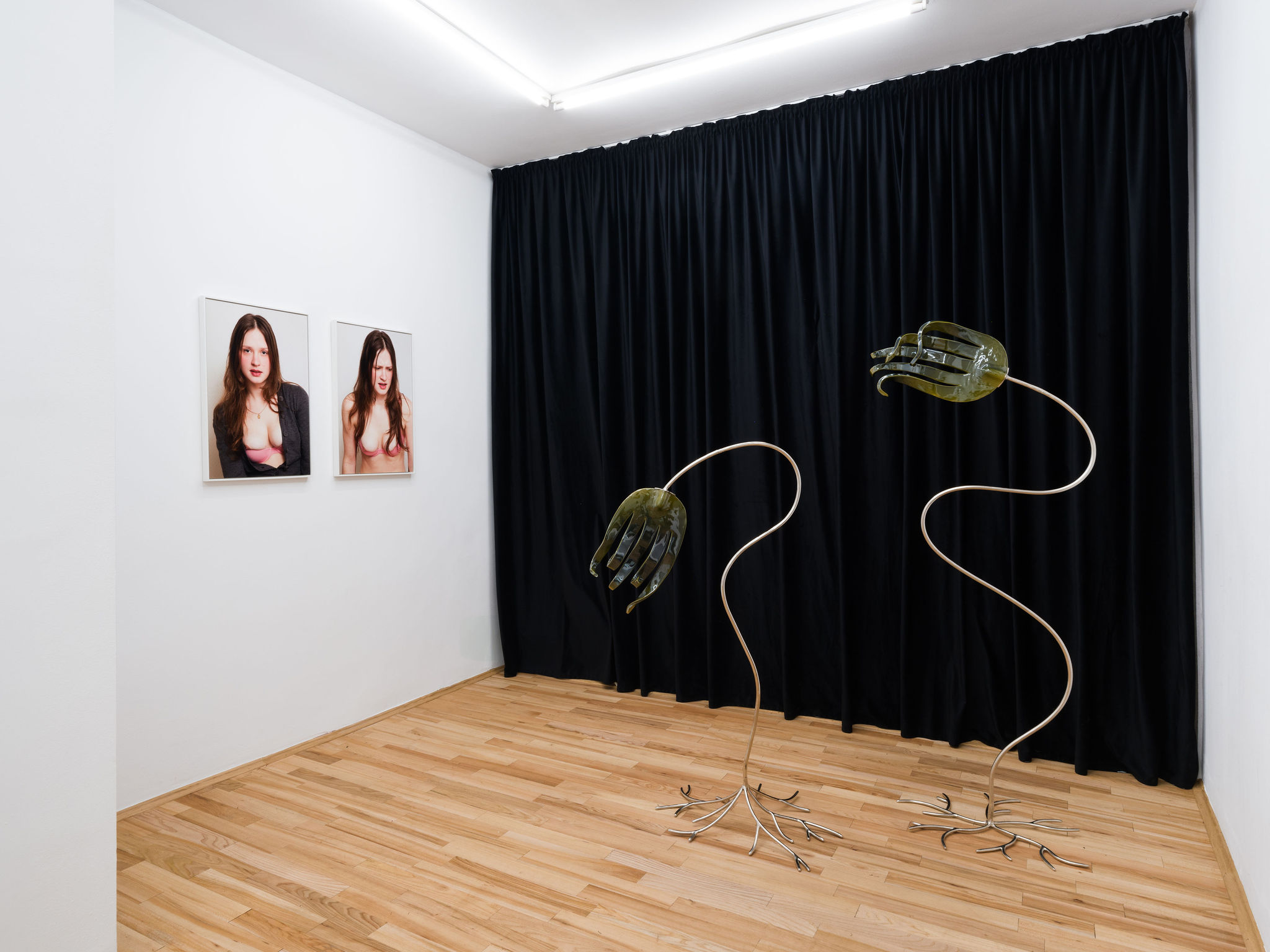 “Portretul, deseori comisionat, a reprezentat una dintre cele mai populare forme de expresie din lumea artei — o revendicare a identității și un subtil exercițiu de statut, o declarație vizuală care spunea: „Exist, și iată de ce contez.” Nu ne putem sustrage privirii celorlalți, iar mințile noastre sunt programate să recunoască expresii faciale în lumea inanimată din jur. Această procesare timpurie și subconștientă ne permite să atribuim identitate, emoție sau intenție celor mai simple forme. Un cerc, două puncte, o casă pot părea că îți zâmbesc dacă le privești suficient. Subiecte ale analizei privitorului, portretele au încetat să zâmbească de mult timp. Ele au învățat în schimb să se joace, să interacționeze și să răspundă privirilor. Whatever is new about this show is not yet visible ne invită să navigăm prin sistemele de putere, validare și auto-reprezentare.” – paragraf din textul scris de Daniela Custrin